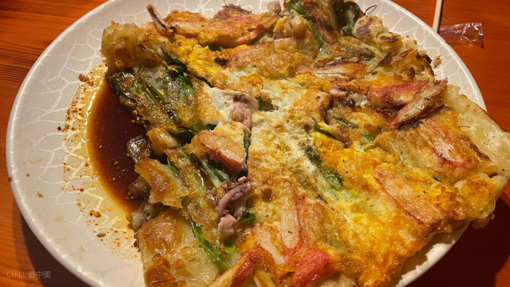 這道東北創意小吃,口感外酥內軟有點像是蛋餅,通常會加上雞蛋、火腿、蔬菜與特製醬汁。
